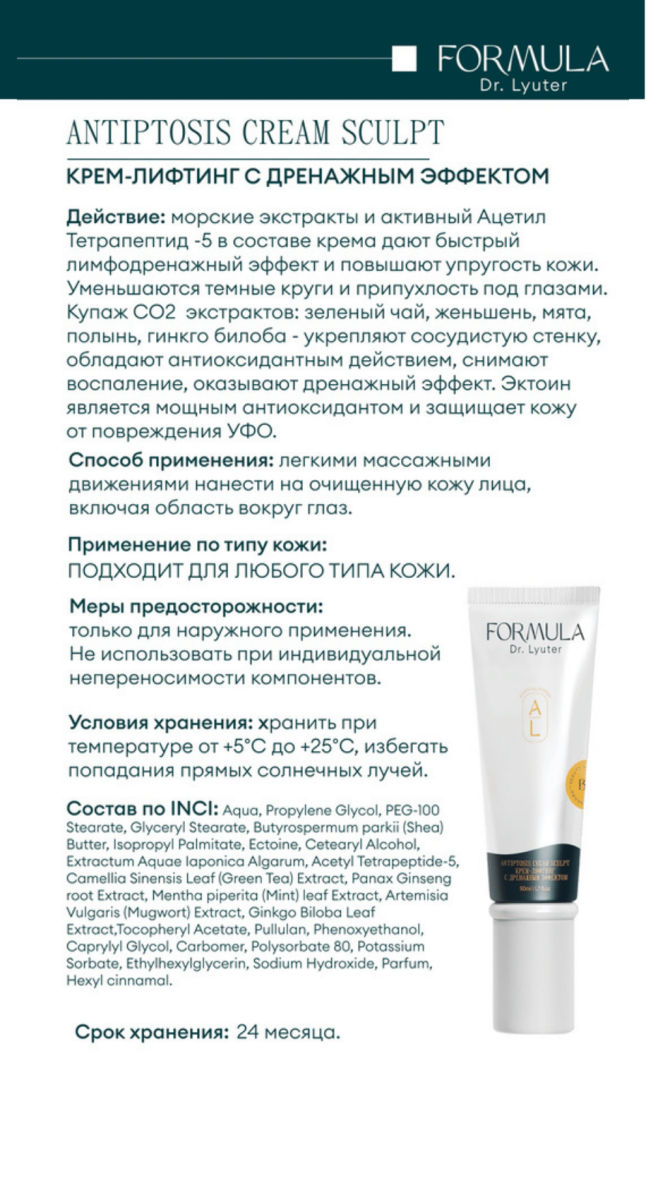 ANTIPTOSIS CREAM SCULPT - морские экстракты и активный Ацетил Тетрапептид-5